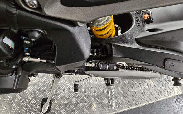 The Street Triple is powered by a 765cc engine which can produce up to 128.2bhp @ 12,000rpm with a maximum torque of 80Nm @ 9,500rpm. This Street Triple comes with Showa upside-down big piston forks on the front and Öhlins piggyback reservoir monoshock on the rear, as well as twin floating discs with Brembo 4 piston calipers on the front with a single disc with a single piston Brembo caliper on the rear.