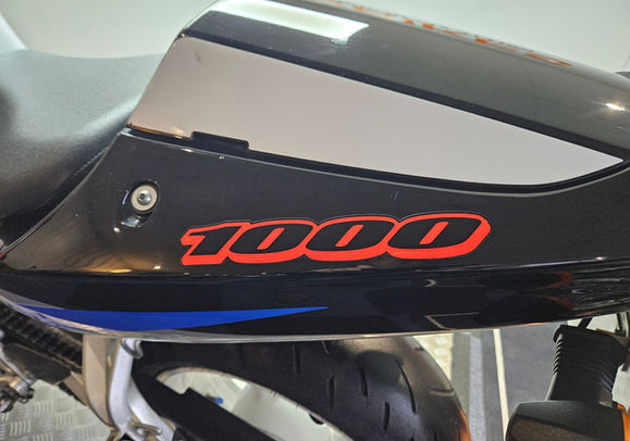 THE SUPERBIKES present here for sale this Suzuki GSX-R1000 K2 in Blue & White with its 998cc four stroke DHOC engine giving 160bhp at 10,800 rpm. Having stunned the world with the launch of the original GSXR1000 K1 just 2 years later Suzuki gave it an update to iron out some of the rougher edges. The result is a machine that is not quite as raw as the K1 but is a better bike to ride as it boasts more power, less weight and a hugely improved chassis! What a stunning bike with the gold forks and titanium headers, tail tidy, seat cowl and crash bungs.